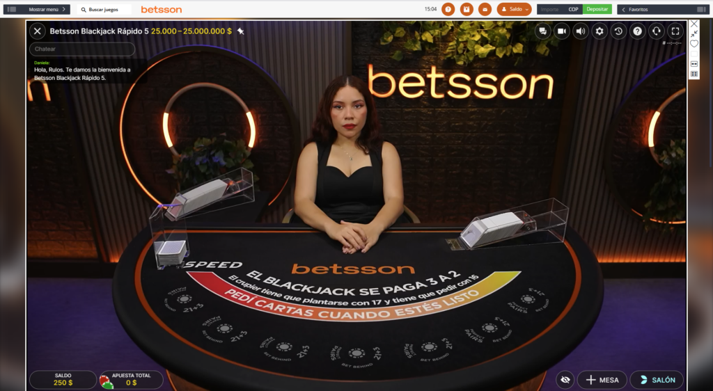 Si ya eres usuario de Betsson, solo necesitas ingresar a la mesa “Blackjack Rápido 5” desde la web o app de Betsson durante el evento. Desde allí podrás interactuar con Higuita mediante el chat en vivo, enviando preguntas o comentarios en tiempo real.